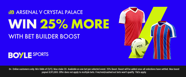 Boylesports Bet £10 Get £20 in Free BetsNo Code*18+. New UK customers (Excluding NI) only. Mobile exclusive. Min Deposit £10. Min stake £10. Min odds Evs. Free bet applied on 1st settlement of any qualifying bet. 30 days to qualify. Free bets expire in 7 days. Cashed out/Free Bets won’t apply. Account & Payment method restrictions apply. 1 Free Bet offer per customer, household & IP Address only. 18+. Applies to bets placed on 1 Goal Ahead market. Get paid out as a winner if your team takes the lead, even if they draw or lose. 90 mins only. Applies to Singles & Multiples. Account & payment restrictions apply. T&Cs apply.