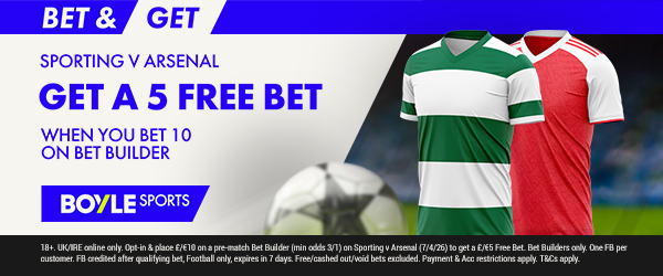 Bet £10 Get £40 in Free Bets“BOYLE Sports UK Sports Sign Up Offers will not be available from 10/04/26 10:00 PM to 11/04/26 5:00 PM UK time.” | 25% NFL WIN BOOST, LIVE NFL STREAM, SMART ACCA, 25-50% WIN BONUS, 2 GOALS AHEAD, CASH-OUT18+. New UK customers (Excluding NI) only. Min Deposit £10. Min stake £10. Min odds Evs. Free bet applied on 1st settlement of any qualifying bet. 30 days to qualify. Free bets expire in 7 days. Cashed out/Free Bets won’t apply. Account & Payment method restrictions apply. 1 Free Bet offer per customer, household & IP Address only. 18+. T&Cs apply.